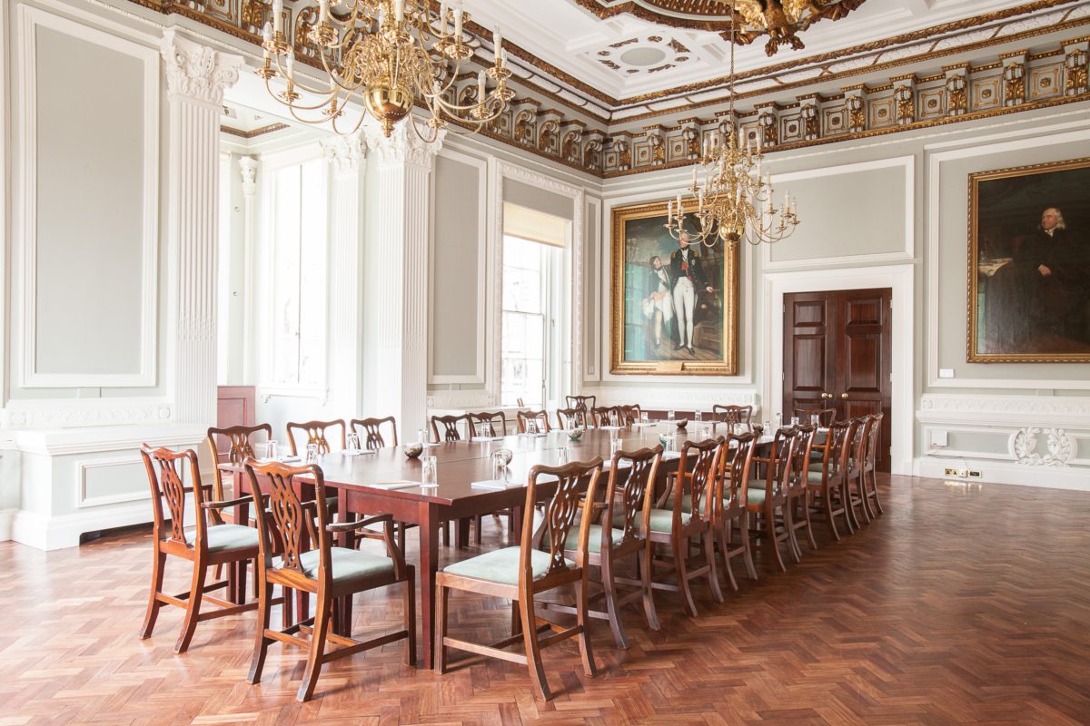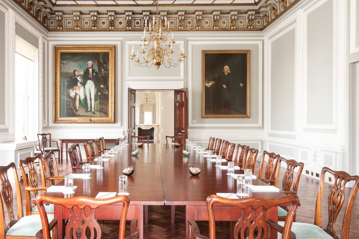 The Council Room at 10-11 Carlton House Terrace is a beautifully bright and air space that boasts views overlooking the Garden Square to the front of Number 10. Its gardenia panelled walls are adorned with period portraits featuring royal gilt frames that match the ornately decorated ceiling above.