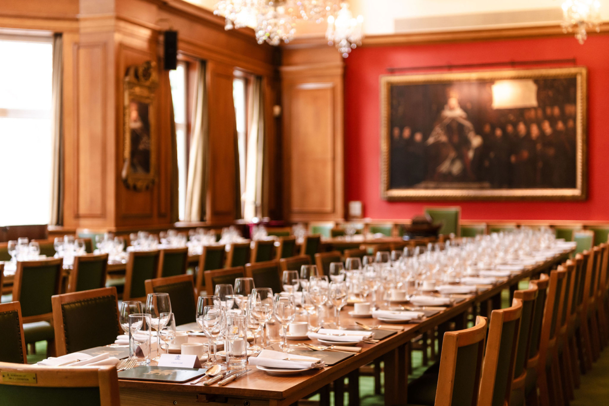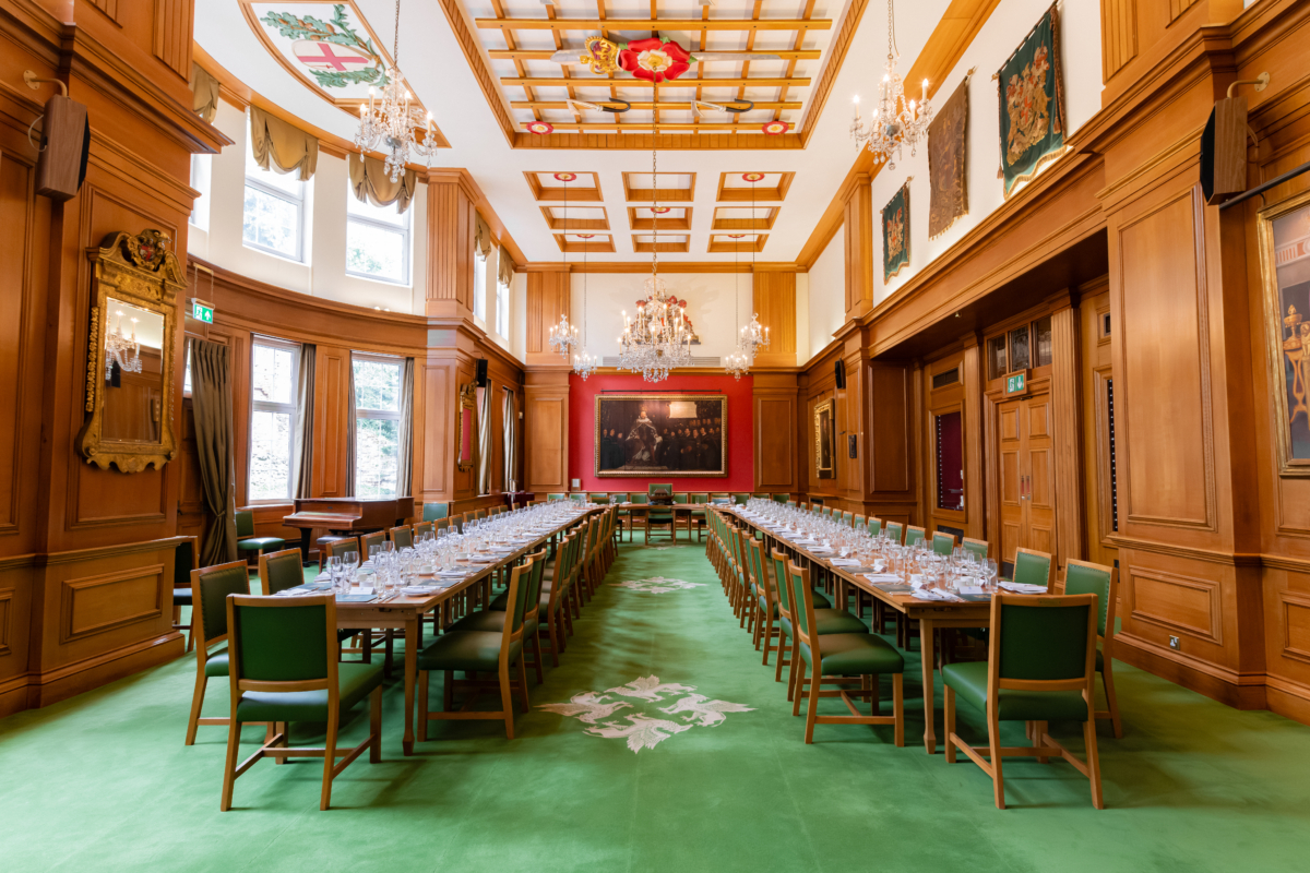 The Great Hall is a striking room, panelled with Japanese Oak and opening directly onto the Terrace. Lit with Waterford crystal chandeliers, flooded with natural light and bowed towards the West, the Hall is dominated by a magnificent Holbein painting of Henry VIII uniting the Barbers’ and Surgeons’ Companies in 1541/2.